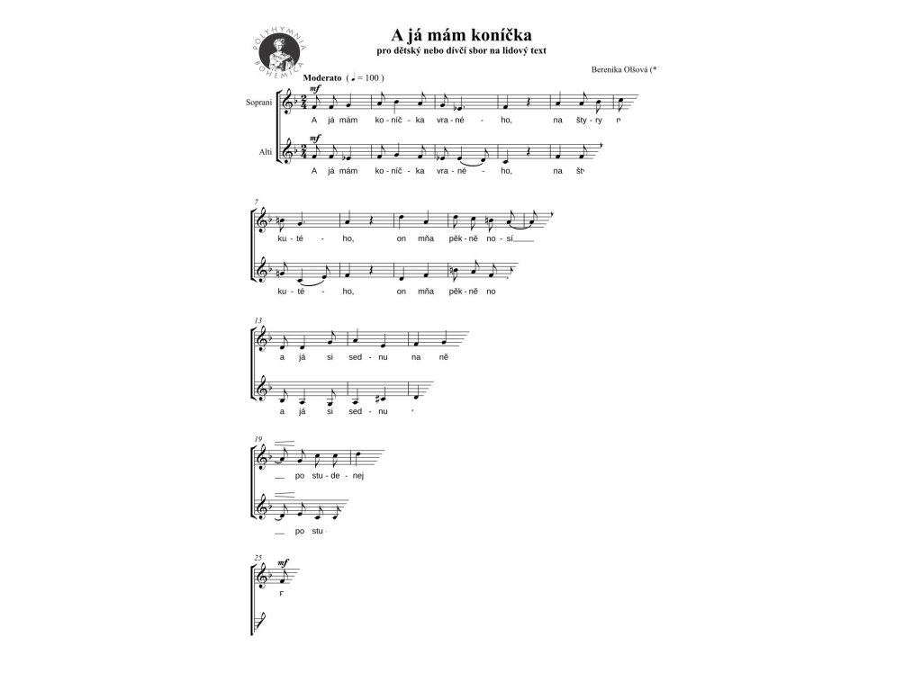 Skladba A já mám koníčka Bereniky Olšové je napsána na lidový text a svojí formou text věrně vystihuje. V prostém dvojhlasu a capella je ukryt jednak rázný rytmus, odpovídající charakteru textu, jednak harmonická bohatost, vycházející z lidových tradic. Rozšířená dvojdílná forma respektuje tradici lidové písně, ovšem zajímavě jí obohacuje. Skladba je vhodná pro dívčí, či starší dětský sbor, eventuálně pro duo. Skladba byla oceněna v rámci 11. ročníku skladatelské soutěže Opus ignotum.